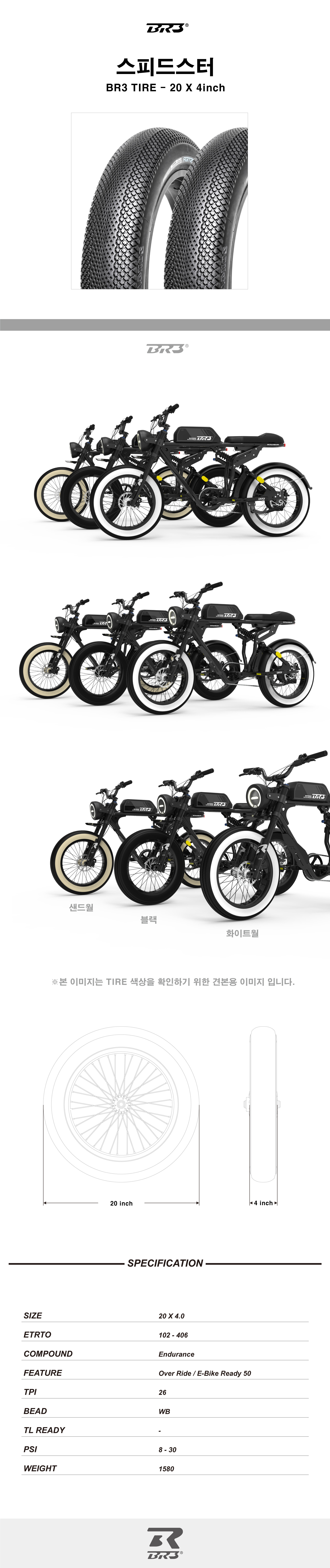 BR3 전기팻바이크, E-SCOOTER 20×4.0 타이어 - 스피드스터 / 블랙